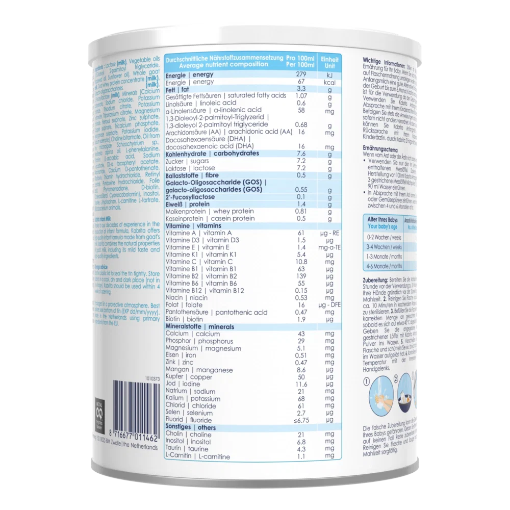 Breastfeeding is the best nutrition for your baby. If you are unable to breastfeed or wish to reduce breastfeeding (partially or fully), Kabrita Infant Milk (0–6 months) can be used from birth. Kabrita 1 Infant Milk is made with high-quality goat milk.